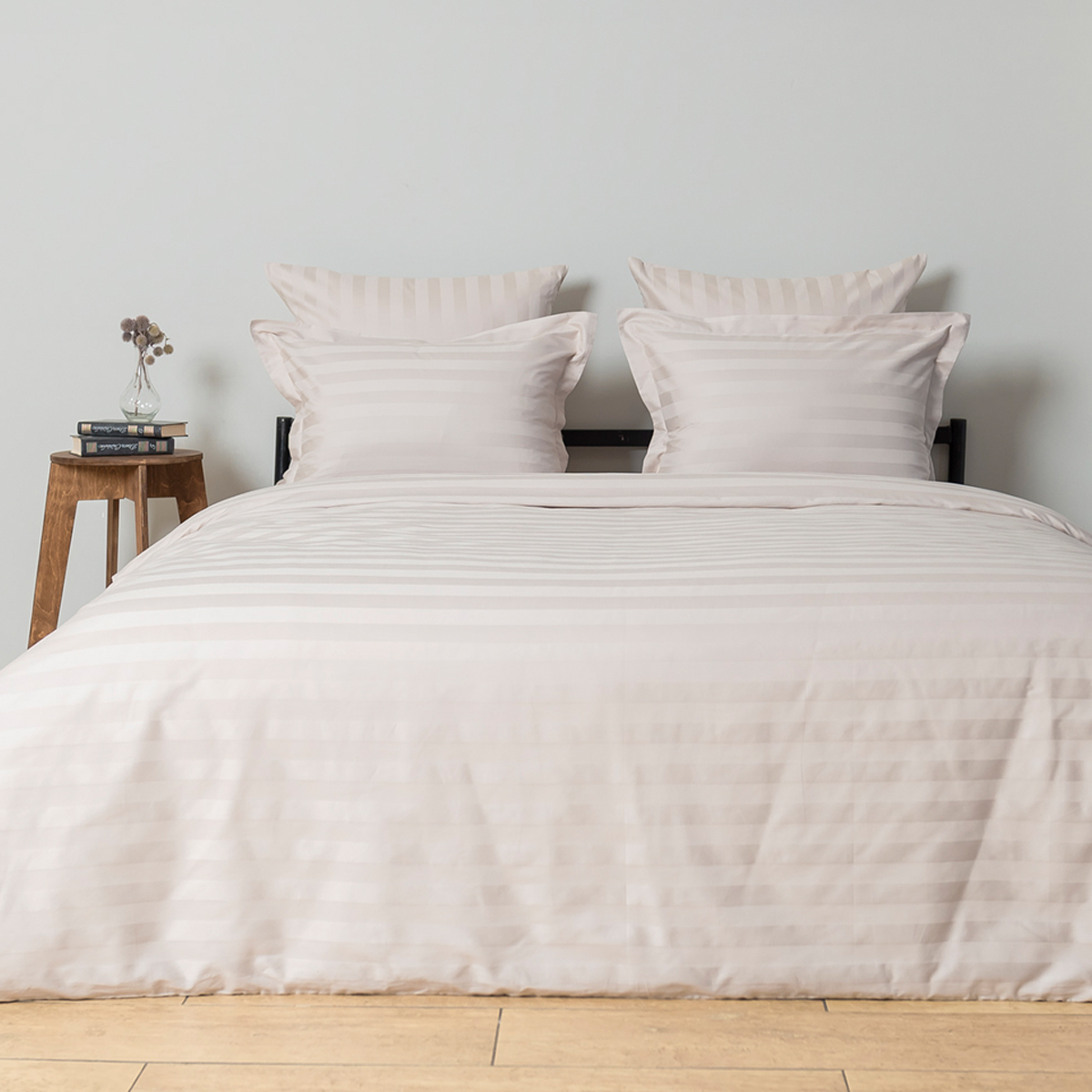 Однотонный стильный пододеяльник произведен из ткани страйп-сатин – 100% хлопок с жаккардовым рисунком в виде полос 3х3