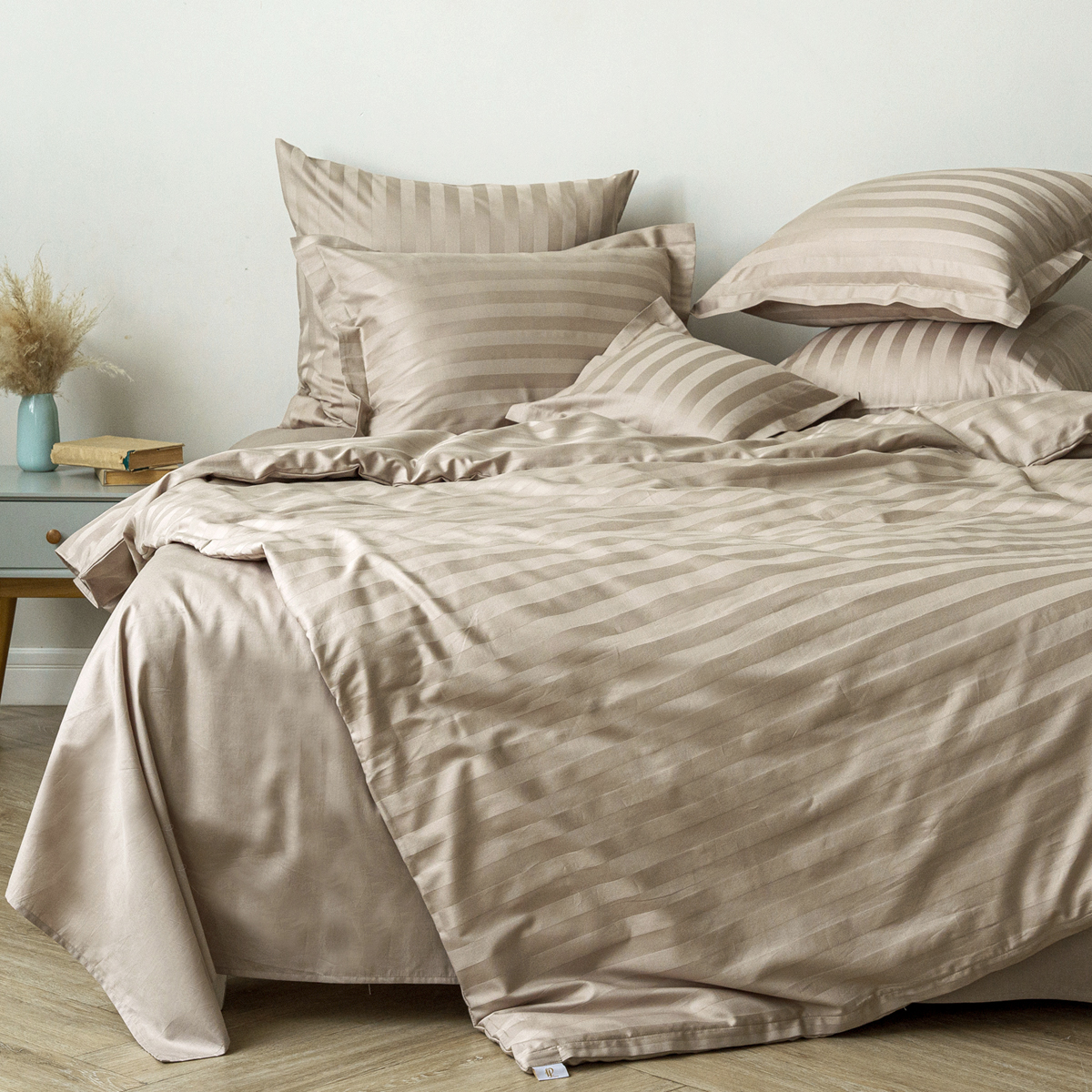 Однотонный стильный пододеяльник произведен из ткани страйп-сатин – 100% хлопок с жаккардовым рисунком в виде полос 3х3