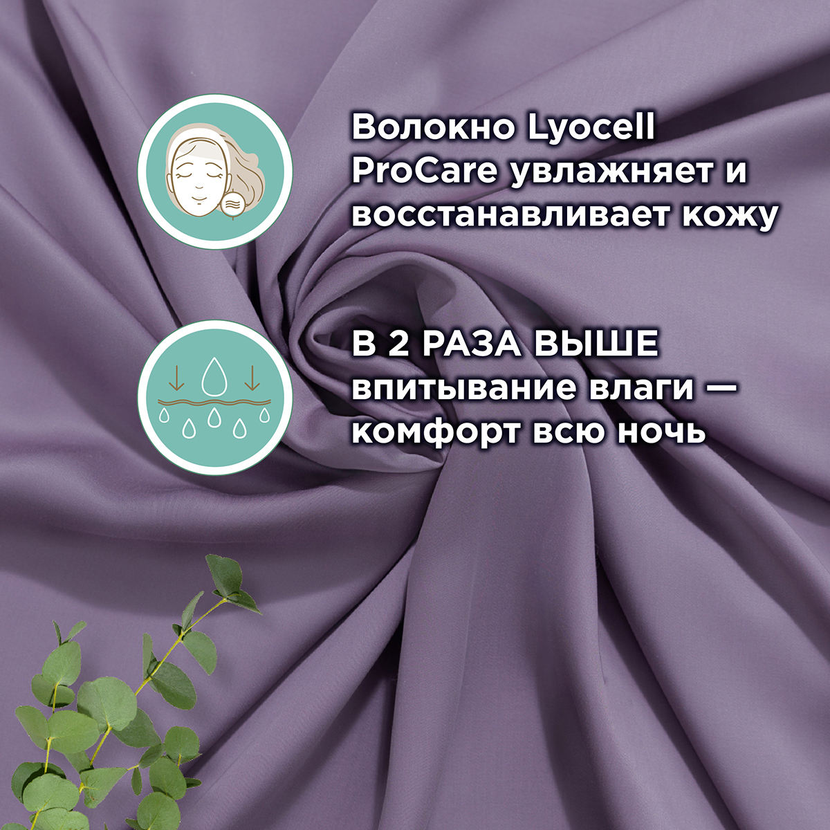 Уникальное волокно Lyocell ProCare обеспечивает восстановление водного баланса дермы. Отмечается увлажнение, смягчение и регенерация кожи. Кроме того, показатель впитывания влаги в 2 раза выше, чем у других тканей – гарантия комфорта на протяжении ночи.