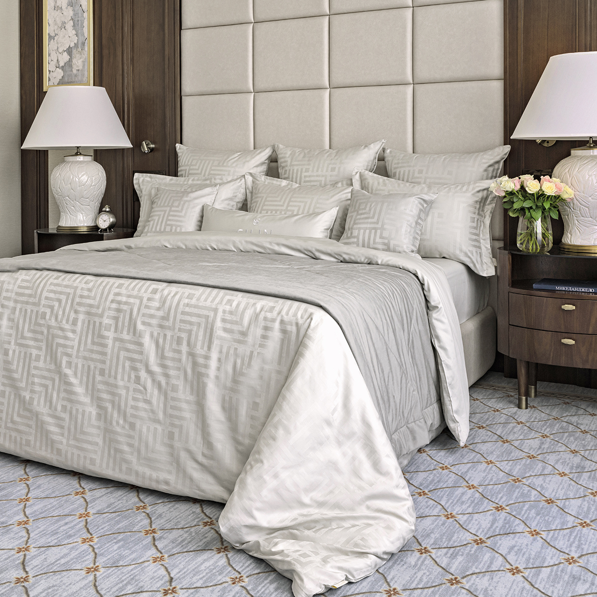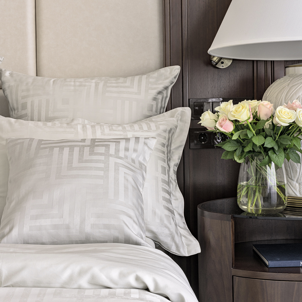 - Лицевая сторона наволочек и пододеяльника выполнена из роскошного жаккарда, оборотная из однотонного хлопка сорта Pima
