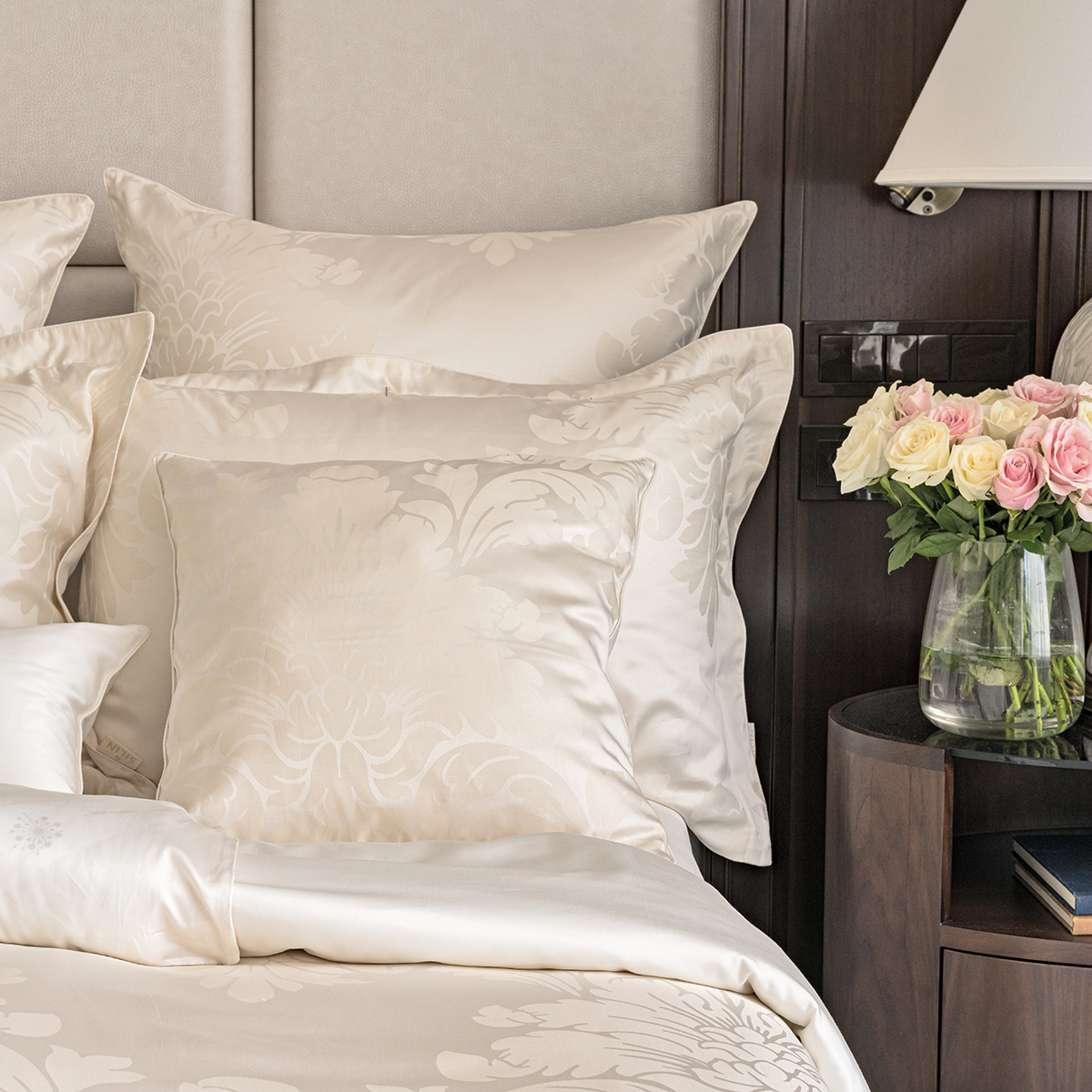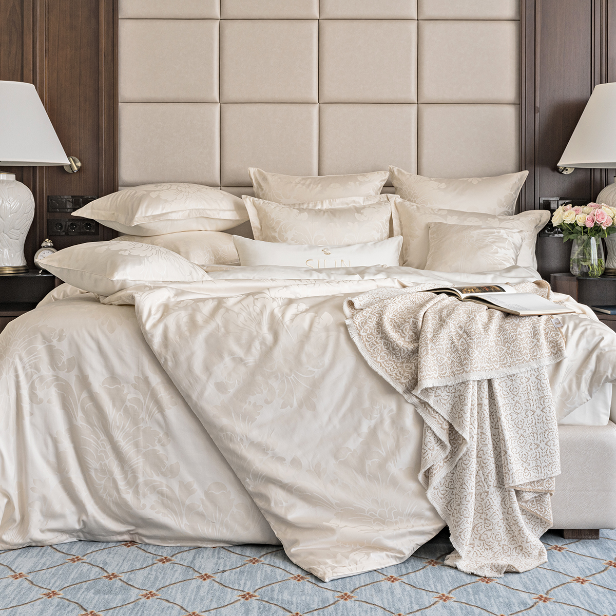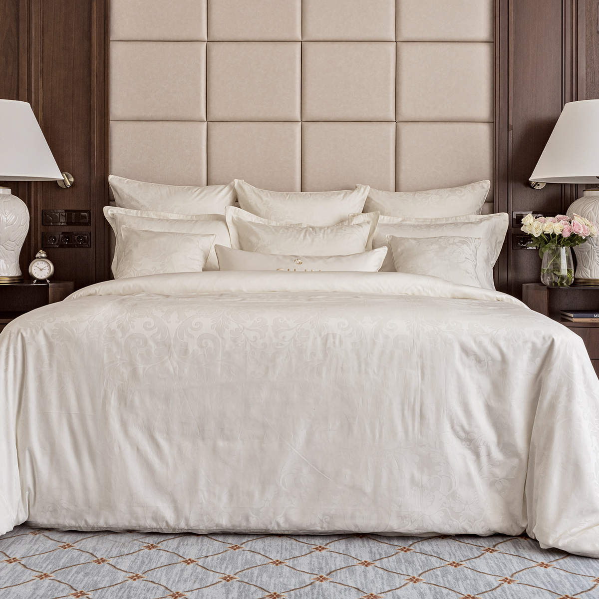 - Лицевая сторона наволочек и пододеяльника выполнена из роскошного жаккарда, оборотная из однотонного хлопка сорта Pima