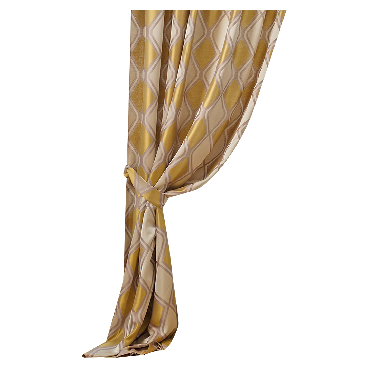 Коллекция «Робертино» выполнена в стиле ар-деко. Шторы выглядят намеренно дорого и элегантно, не кричаще роскошно, а просто ценно. Геометрический рисунок в виде ромбов горчичного цвета выгодно подчеркивает сияющий светло бежевый фон. Контраст цветов выгодно подчеркнет и оживит интерьер любой комнаты.