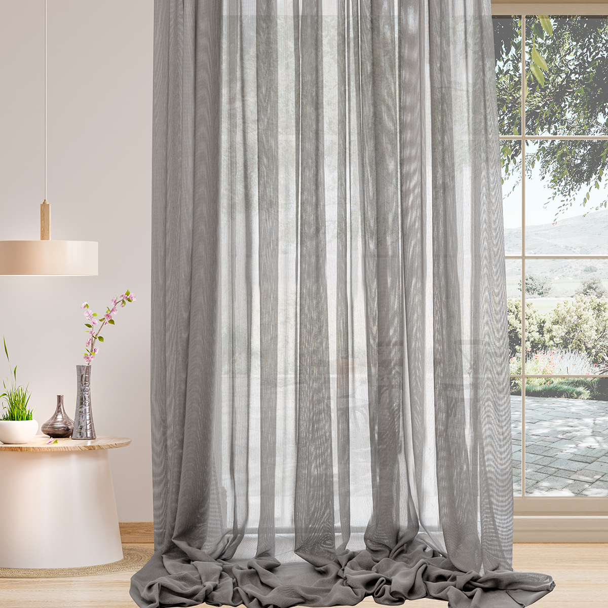 Легкая невесомая и в тоже время особо прочная, износостойкая ткань соткана в виде сетки. Натуральная фактура очень мягкая, приятная на ощупь. Прекрасно драпируется, может использоваться как самостоятельный декор окна.